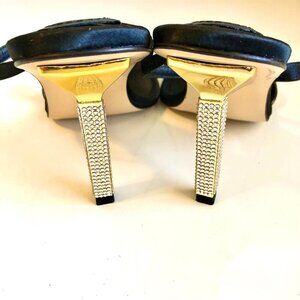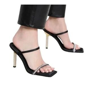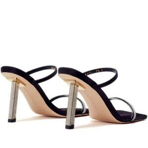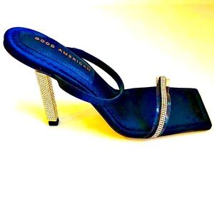 New GOOD AMERICAN Courts Black Satin & Rhinestone-Heels Sandals 7 MSRP $200