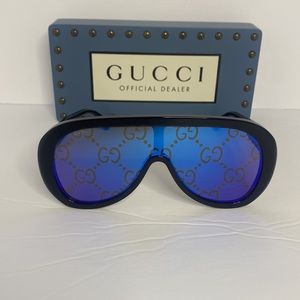 New - GUCCI Blue Logo Mask Unisex Sunglasses GG1370S 001 99
