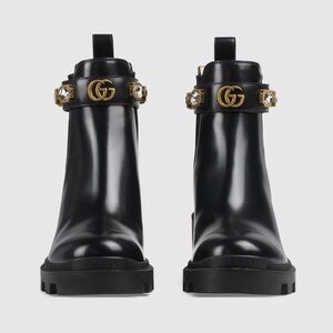 New GUCCI GG Calfskin Crystal GG Trip black Chelsea Ankle Boots