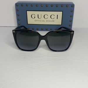 Rectangular shape with GG interlocking metal logos on the front. Lustrous Black Finish. Top Selling Style. Gucci iconic bee on end tip. Gucci GG0022S