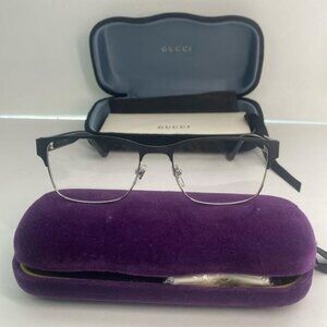 New - GUCCI GG0750O 001 square optical matte black and silver with shiny black…