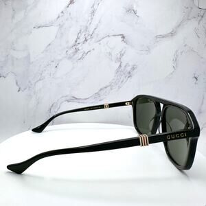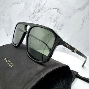 New GUCCI Sunglasses Black Aviator Pilot Gold Logo Metal Red Green Web Gucci
