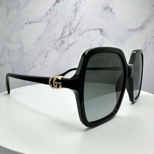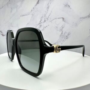 New GUCCI Sunglasses Black Oversized Square Gold Metal GG