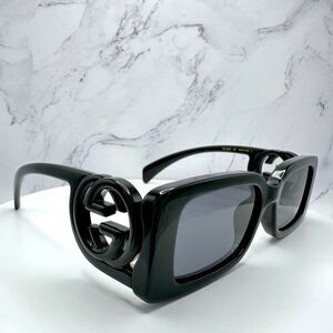 New GUCCI Sunglasses Black Square Rectangular All Black