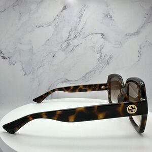 New GUCCI Sunglasses Brown Black Tortoise Square Women's Gold GG Logo Oversized