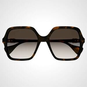 New GUCCI Sunglasses Brown Square Oversized Gold Metal GG Logo 56mm