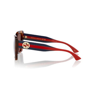 New GUCCI Sunglasses Brown Tortoise Shell Gold Metal GG Web Arms Square Womens
