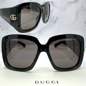 New GUCCI Sunglasses Wrap Square Black Gold Metal GG 55-16-130mm Authentic Gucci
