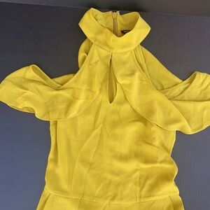 This ruffled romper adds a feminine touch to your wardrobe with a cold-shoulder design, slash pockets and a keyhole at the halter neck. Back zipper closure.” 100% polyester