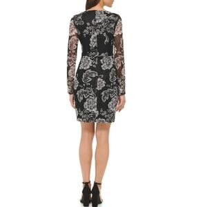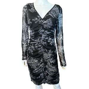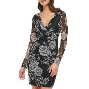 New ~ GUESS ~ Black Floral Long Sleeve V-Neck Sheath Dress Size 14