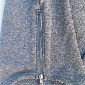 Lightweight hooded sweatshirt featuring an embossed logo design and side zippers for a customizable fit.