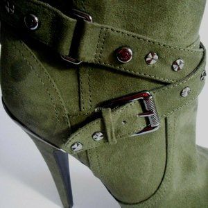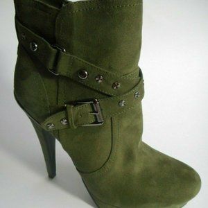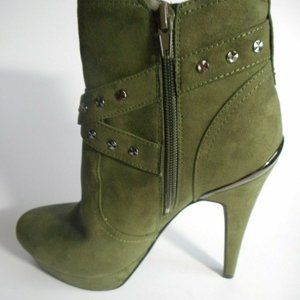 New GUESS Dark Green Velour Fabric Stiletto Ankle Boots