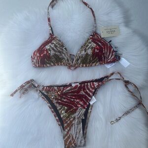New GUESS EMBROIDERED TRIANGLE Swimsuit Two Pieces Set SZ M