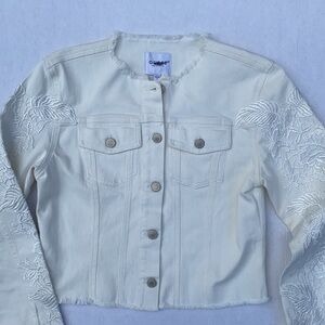 New GUESS Embroidered Denim Jacket Whitelace SZ S