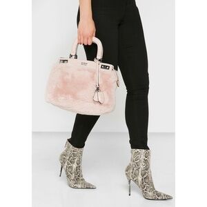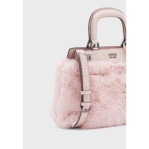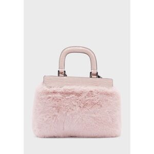 Your everyday bag gets a chic update. A faux-fur satchel made with croc-embossed trim, a metal logo, detachable keychain, top handles and a crossbody strap.
