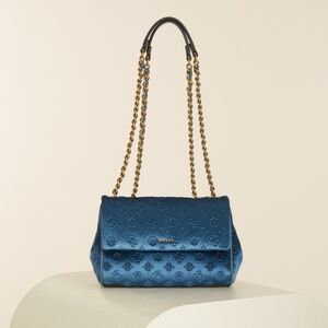 A luxe handbag that is beautifully debossed in an allover logo print and features a convertible crossbody-to-shoulder strap, fold-over flap and front logo emblem.