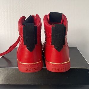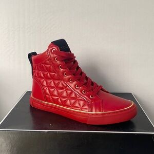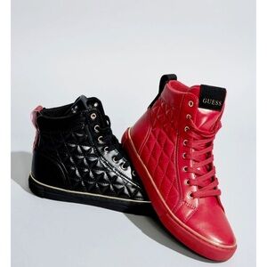 This pair of high-top sneakers is all about the details: made from quilted faux leather with metallic trim for added shine.