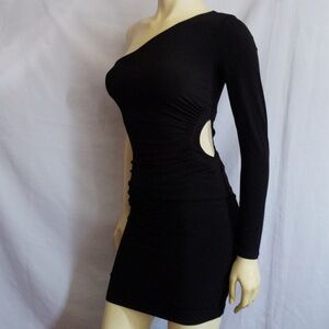 New GUESS ONE-SHOULDER SOLID CUTOUT DRESS SZ S
