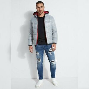 New GUESS Reversible Primal Red Multi Puffer Jacket SZ XS