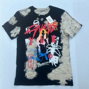 New GUESS Edgy and vibrant, this jersey tee features a tie-dye wash, front graphic and short sleeves.