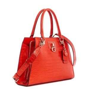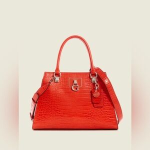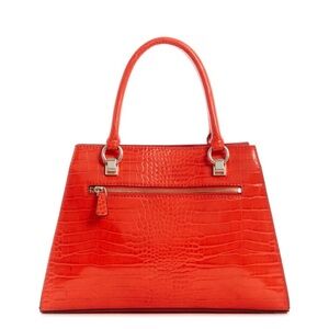Carry your necessities in this satchel designed in croc-embossed faux leather, with a front logo detail and removable keychain.