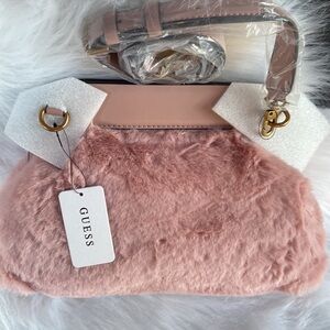 An elevated experience in both texture and design, this crossbody clutch bag is designed in a lush faux-fur fabrication and features a frame silhouette with snap closure and adjustable strap.