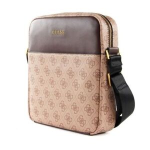 New GUESS Vezzola Flat Crossbody Top Zip Bag Brown