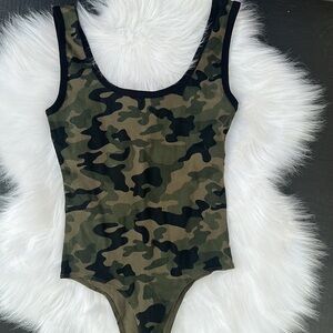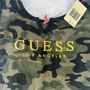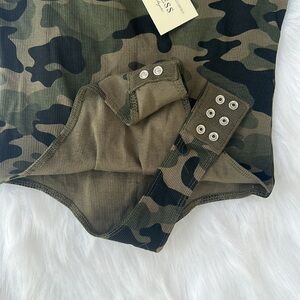 Keep it cute and casual in this sleeveless ribbed knit bodysuit designed with contrasting trim, a notched scoop neckline and an embroidered logo detail. Thong bottom with snap-button closures.