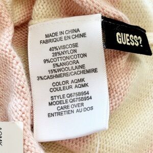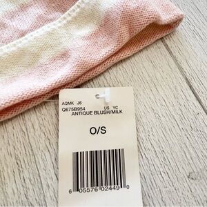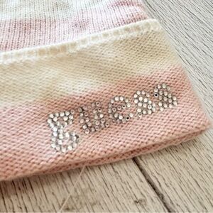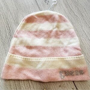 New GUESS Women’s Pink Ivory Striped Beanie Hat Cuffed Bling Logo One Size. New with tags.
