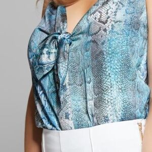 The Marciano Collection A glamorous python print bodysuit featuring adjustable spaghetti straps and a knot front detail.