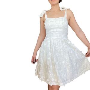 New Gal Meets Glam Anthropologie Floral Tie Shoulder Dress Size 0 White Romantic