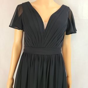New Gala Special Occasion (2) Black Chiffon Flutter Sleeve Maxi Dress