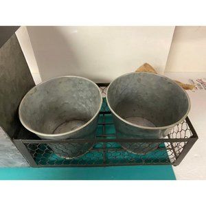 New Galvanized Tin Birdhouse with Two Planter Pots