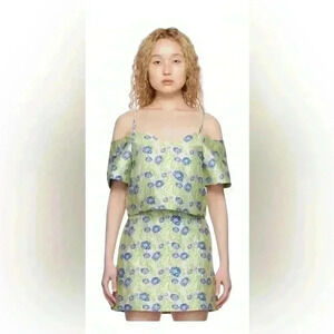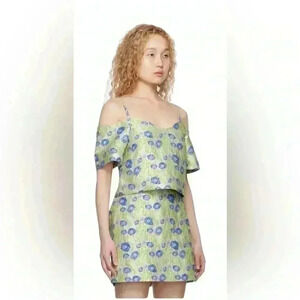 New Ganni Floral jacquard off shoulder blouse top size EU 38 US 6