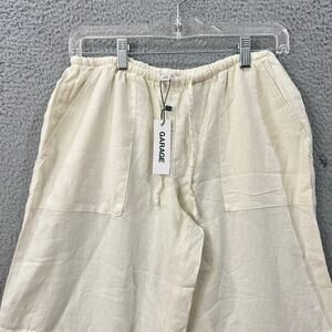 New Garage Linen Blend Wide Leg Ivory Pull On Pants Casual Relaxed Small