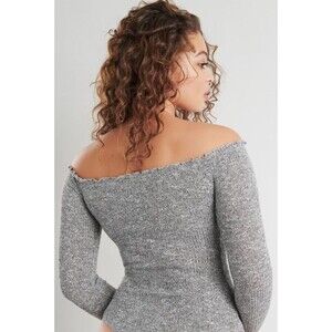 New Garage Women's M Off the Shoulder Bodysuit Long Sleeve Salt & Pepper Gray