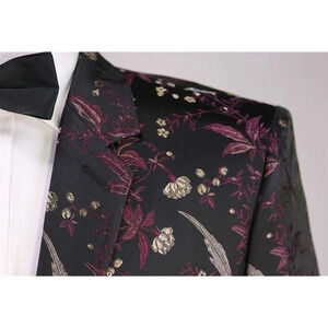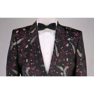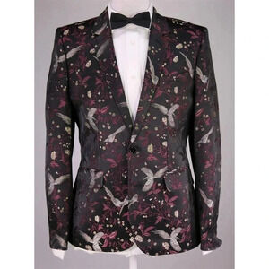 New! Garcons Infideles Paris Black Floral Birds Jacquard Dinner Jacket Blazer 42