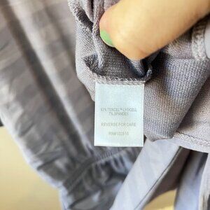 Slightly sporty in supersoft TENCEL™ Lyocell micro French terry with subtle yarn-dyed stripes. Cool, with blouson flair, a pair of pockets, in a graceful midi length with a back slit for an easy stride.