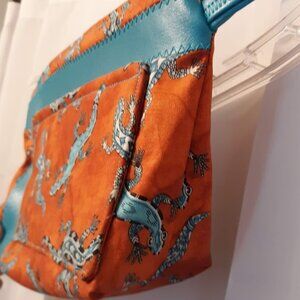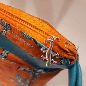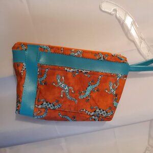 New Gecko theme Vinyl trim Clutch travel make-up bag Wristlet cosmetics Rust Blu