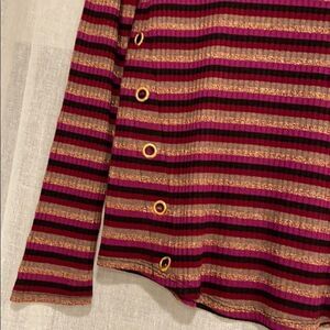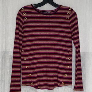 New Generation Love Gilly Striped Metallic Long-Sleeve Top Eyelet Details XS