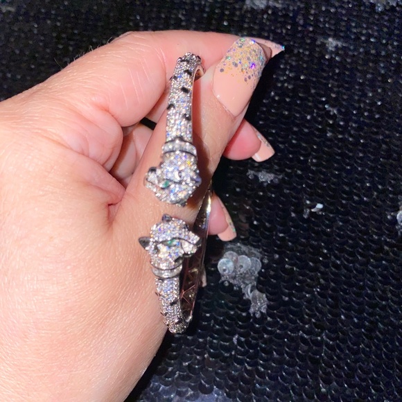 This beautiful Cubic Zirconia bangle bracelet features interesting animal-inspired ends.