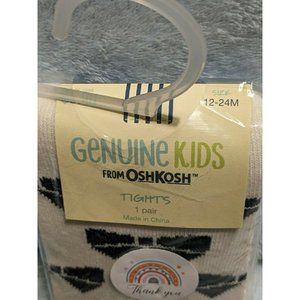 New in package. Genuine Kids, size 12-24 months Cream Footed Tights with black bows.