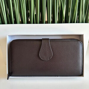 New Genuine Leather Large Wallet Dark Brown with box