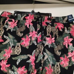 New with tag george stretch jogger shorts size men's 2X 44/46. They are black with tigers and flowers pockets front and back drawstring inseam 8 1/2 inches.