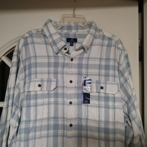 New with tag george super soft flannel size men's 2X 50/52. It is light blue white plaid 26 inches across and 32 inches long.