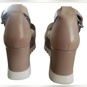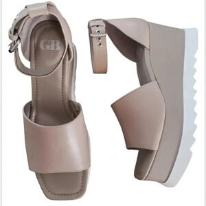 Gianni Bini Absolutely Stunning New With Tags Women's Size 10 Beige Leather Platform Chunky Retro Lugsole Wedge Square Open Toe Goth Punk Dolls Kill Vintage Bratz Wedding Drag Biker Rider Gothic Vacation Cruise Beach Festival Packable Comfortable Walking Dancing Office Career Church Minimalist Modern Must-Have Spring Summer Rockabilly 80 Y2K Vintage Business Casual Streetware