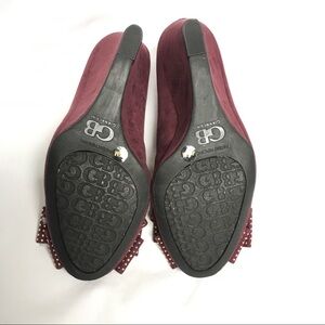 *New* Gianni Bini burgundy wedge heels ๐ New without box ๐ never worn ๐ brand new ๐ styrofoam is still in the bow on the toe ๐ suede material ๐ gold accents ๐ bought from Dillard's