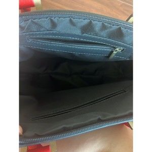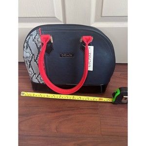 Brand new with tags. It does have some light scuffing on the bottom, please see the pictures. This bag is a good size and has pockets inside. It is approximately 13.5 inches long, 10 inches tall, and 6 inches wide.