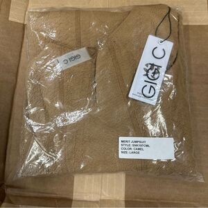 New Gigi C Merit Jumpsuit Camel Brown Snakeskin L