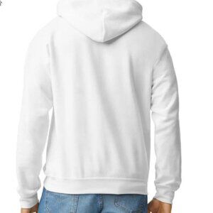 New Gildan Heavy Blend White Hooded Sweatshirt with Kangaroo Pockets